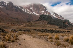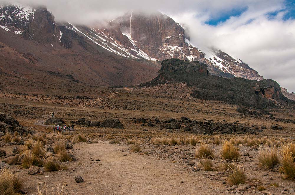 29483568 – group heading up to lava tower on the machame route of kilimanjaro