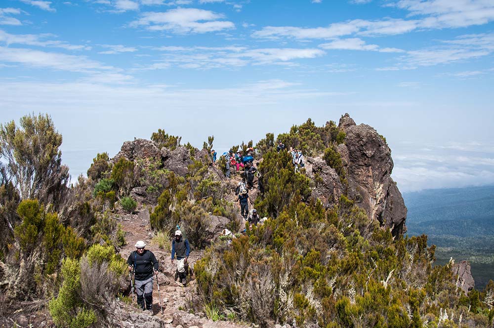 29483605 – group moving above the clouds on the ridge leading to shira camp